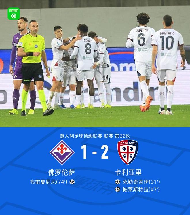 佛羅倫薩1-2卡利亞里,帕萊斯特拉傳射建功,布雷夏尼尼破門